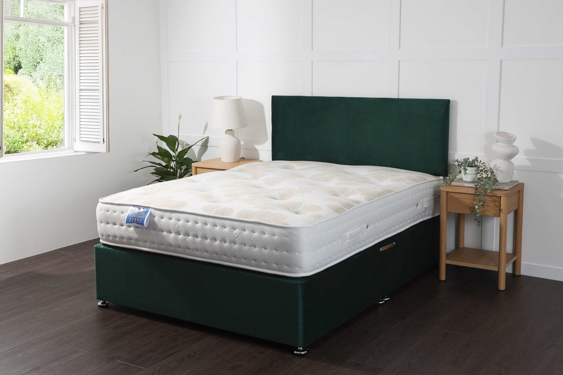 Beneath the mattress lies a durable divan base, handcrafted in the UK from robust white wood timber and reinforced with secure corner joints for lasting strength. This base is available in six standard sizes, with bespoke sizing available upon request to accommodate unique bedroom layouts. For added practicality, you can choose from a range of drawer configurations, offering seamless storage for bedding, clothing, or seasonal items, helping you keep your space tidy and well-organised.