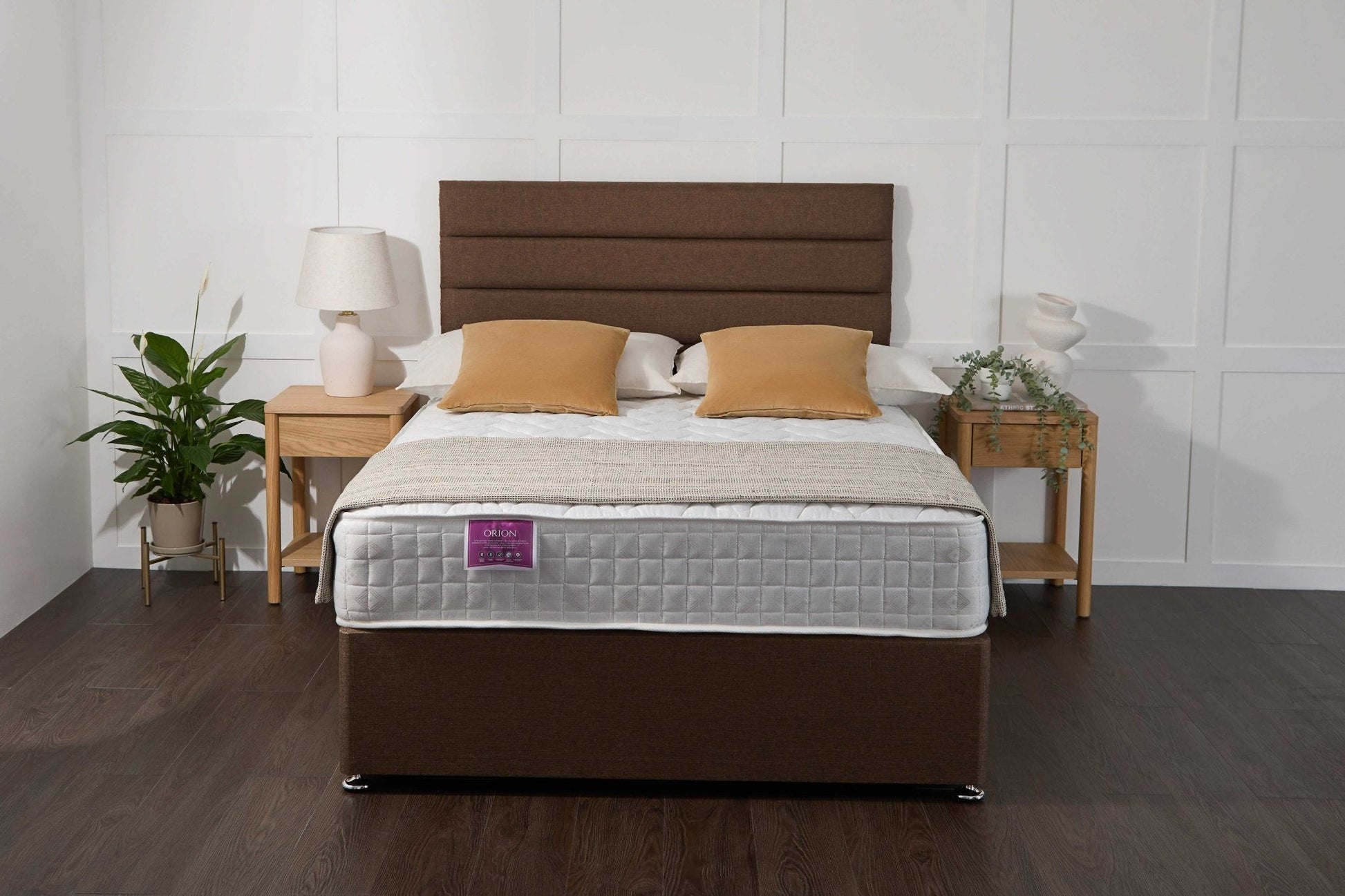 The Apollo Orion Coil Sprung Divan Bed Set delivers a harmonious blend of durability, style, and dependable comfort—perfect for those seeking a restful night’s sleep with lasting support. At the centre of this mattress lies a 13.5 gauge open coil spring system, engineered to offer a medium feel that supports all sleep positions. This balanced design encourages healthy spinal alignment and eases pressure points, helping you wake up feeling refreshed and restored.
